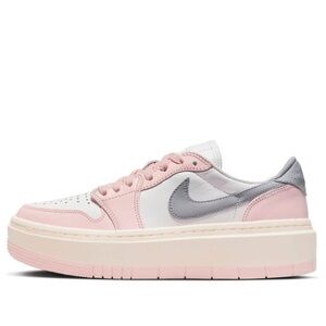 The Women’s Air Jordan 1 Elevate Low "Atmosphere" is a women’s-exclusive version of the retro basketball shoe with an updated design that includes a platform-style sole. The Jordan 1 Elevate Low puts a contemporary twist on the Jordan 1 Low with an oversized, white rubber sole that adds significant height to the wearer. In spite of its modernized style, the rest of the shoe remains somewhat consistent with the Jordan 1 Low OG model. The shoe features a white leather base with pink leather overlays. A grey leather Swoosh appears on the mid-panel.