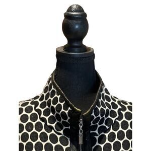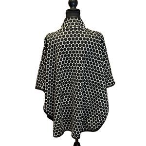 Women's Joseph Ribkoff Blk White Zip Front Jersey Leather Cape Poncho Sz 6, EUC