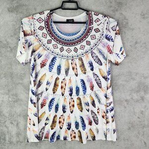 Women's Jostar Feather Print Short Sleeve Top Shirt Short Sleeve Round Neck XL