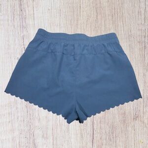Joy Lab Pull On High Rise Running Shorts Womens Large Blue Elastic Waist Liner and Scallop cut legs. Front side pockets on both sides