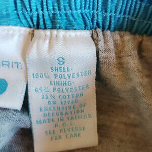 These pants are in great condition. They are blue crop pants with stripes down each leg. Front zipper pockets. Elastic drawstring high waist. Fully lined with Cotton Knit. The Shell is Polyester.