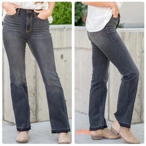 Womens Judy Blue High Waisted Slim Bootcut Raw Hem Jeans