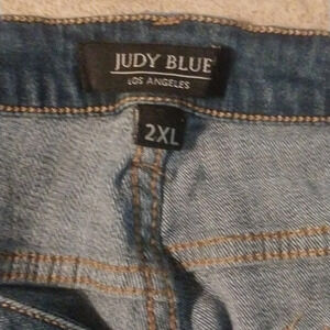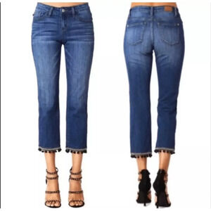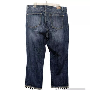 Women's Judy Blue Medium Wash Cropped Straight Fit Tassel Hem Jeans XXL Preowned Boho Bohemian Embroidered