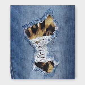 Womens Judy Blue Skinny Fit Distressed Leopard Print Blue Jeans Size 7 / 28