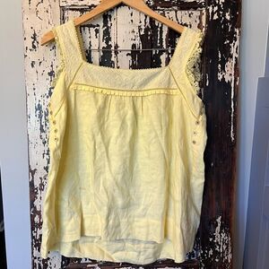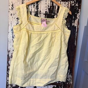 Women’s Juicy Couture Boho yellow lace and button tank top. Size XL