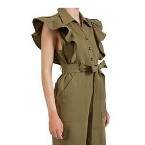 Women’s Jumpsuit EN SAISON Essie Jumpsuit ARMY GREEN Ruffle Sleeveless Jumpsuit
