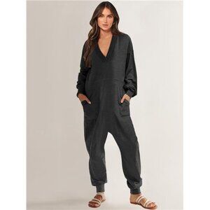 *Features - Women's jumpsuit complete with a stylish deep v-neck, long sleeves, dropped crotch, and two side pockets. jumpsuit perfect for lounge,homewear, and Pajamas, daily.