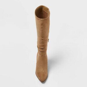 Complement your looks with the elegant style of the Junie Tall Boots from Universal Thread. These tall boots feature a pointed, closed toe with approximately three-inch block heel for a fashionable look. Featuring faux suede, these knee-length tall boots have a zipper closure for easy on and off. Universal Thread tall boots Pointed, closed toe 2.75in block heel Faux suede Knee height Zipper closure