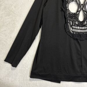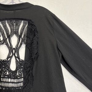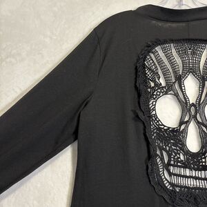 Women's Junior's Black Crochet Cardigan Skull Halloween Gothic Y2K Size 2XL