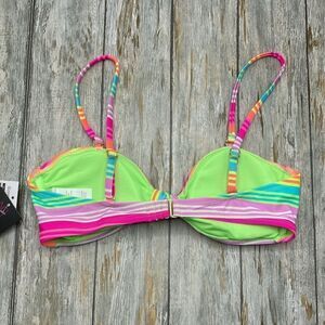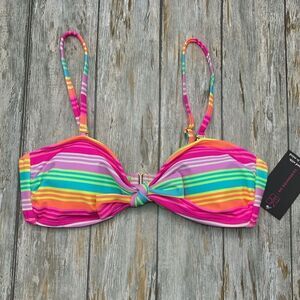 Women’s Juniors Tricot Striped Knot Bikini Top Swimsuit Bathing Suit Size M