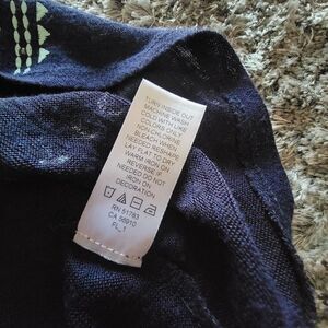 This tank top is in excellent condition. Light weight sweater material, sort of see through. Navy Blue with mint design.