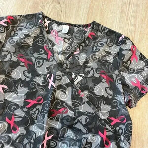 Womens Just Be Breast Cancer Ribbon Scrub Top - M