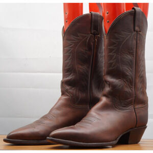 The Women's Justin Western 13" Bay Apache Brown Cowboy Boot L4935 in size 9B is a stylish and versatile pair of boots perfect for casual occasions. With a square toe, low heel, and embroidered accents, these mid-calf boots feature a pull-on closure for easy wear. Made with high-quality leather, these boots have a Western cowboy theme that adds a touch of flair to any outfit, whether for winter, summer, fall, or spring. The Justin Boots brand ensures both durability and comfort, making these boots a must-have for any fashion-forward woman.