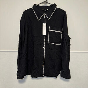 Women's KATE KASIN Blouse Black/White Size 2XL NEW NWT Button Down Plus Size
