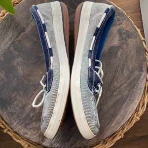 Women’s KEDS ortholite slip on boat loafers shoes Blue white striped Nautical 8