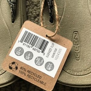 The KEEN Harvest Flip features resilient cushioning that contains recycled PU foam and rubber underfoot, plus webbing made from 100% recycled P.E.T plastic bottles. Repurposed for a purpose: happier beachy adventures.