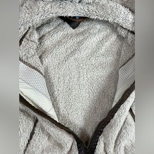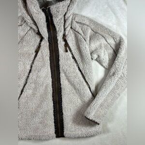 Women’s KUHL Medium Flight Jacket Sherpa Leather Lined Hooded Tactical Coat EUC
