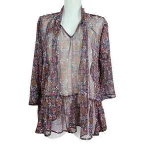 Womens KUT From the Kloth brown multicolor sheer blouse Size L TUNIC Boho NWT