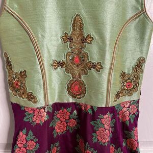 Womens Kanchipuram Silk Gown 38 Green Purple Brocade Sleeve Crinoline Formal