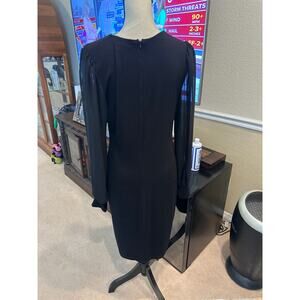 Knee length knit dress with shear sleeves and cuffs. 38” in length. Back zipper material tag has been cut out