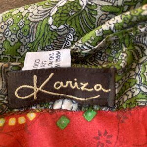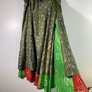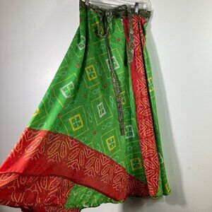 Womens Kariza Vintage Silk Magic Sari Wrap Skirt Dress Green Red Pattern One Siz