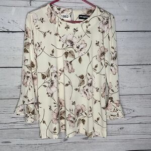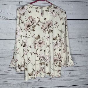 Women's Karl Lagerfeld Cream Floral Blouse Bell Sleeve Pullover Tunic Top size S