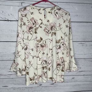 Women's Karl Lagerfeld Cream Floral Blouse Bell Sleeve Pullover Tunic Top size S. Excellent condition.