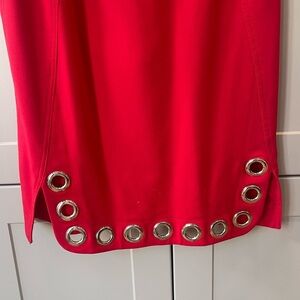 Womens Karl Lagerfield Paris Red Grommet Sleeveless Tank Sheath Dress Small Knee