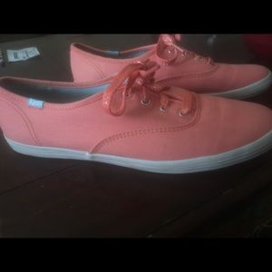 Very cute Keds with glittering shoe laces. Small unnoticeable defect on the left side of the right shoe. Picture included