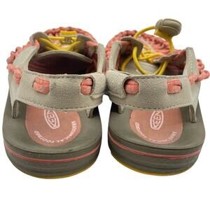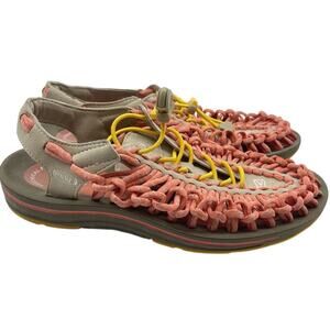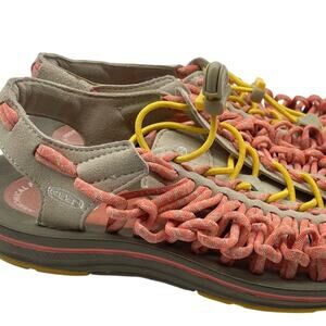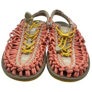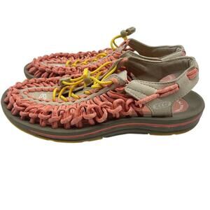 Women's Keen Uneek Sandals, good condition, minor spot on heel of left shoe, soles are in good condition, all cords are intact, size 7, coral and yellow color