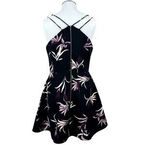 Women's Keepsake Black Pink Mini Bird of Paradise Fit & Flare Short Dress Large