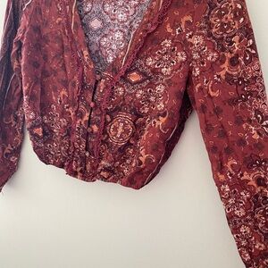 Women’s Kendall + Kylie Red Paisley Button Down Long Sleeve Blouse, excellent used condition, size small. Bundle and save!