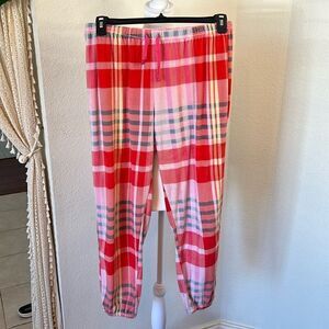 Women's Kensie Pink and Red Plaid Patterned Fleece Pajama Set ~ Size Large