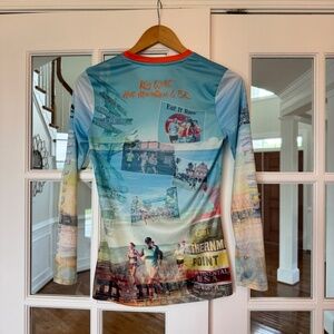 Excellent Used Condition. Terrific long sleeve for cool weather training! I liked this fabric so much that I used the same company and fabric to design my own shirts for a local race.