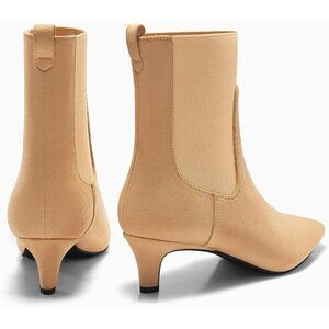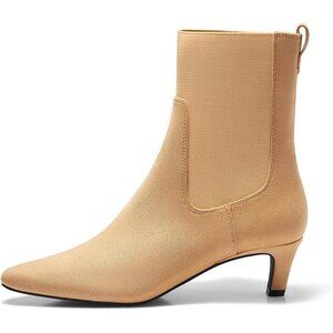 Women's Khaki Ankle Low Kitten Heel Pointed Toe Slip On Dressy Winter Boots