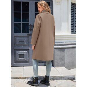 [Feature]The winter casual overcoat features a double breasted design,to-the-knee length,a classic loose style in solid color,a lapel that falls off the shoulder,and two practical slanted pockets on the side