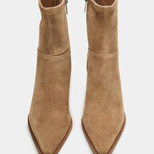 Features: These ankle boots feature a sleek faux suede exterior with a squared-point toe for modern elegance. 2.56-inch stacked kitten heels add a touch of sophistication, while the convenient zipper allows easy on-and-off. Cushioned insole provides all-day comfort, and the non-slip rubber outsole ensures stability and durability.