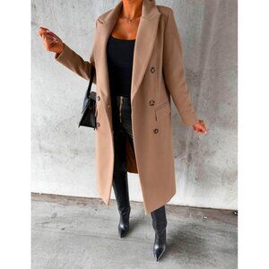 Womens Khaki Long Wool Coat Double Breasted Trench Coat Fall Winter Clothes