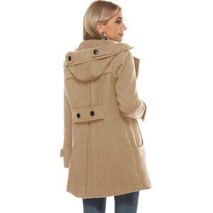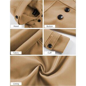 Women's Khaki Warm Double Breasted Wool Pea Coat Trench Coat Jacket with Hood