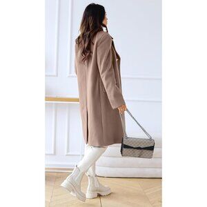 Women's Khaki Winter Lapel Double Breasted Office Work Long Wool Overcoat