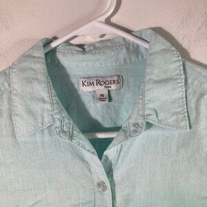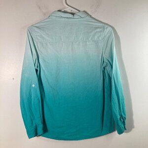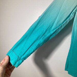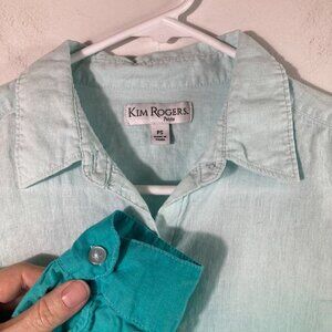 Womens Kim Rogers Linen Blend Button Shirt Ombre Roll Sleeve Green PS Linen Rayo