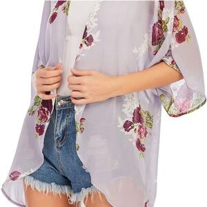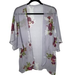 Womens Kimono Cardigan Size M Sheer Purple Floral Boho Gypsy Festival Summer
