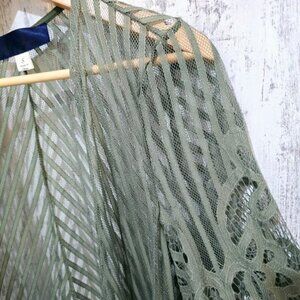 Women's Kimono Cardigan Size Small Olive Green Lace Relaxed Fit Whimsical Flowy