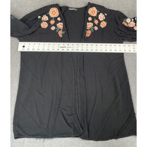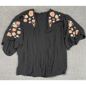 Womens Kimono L Black Embroidered Boho Floral Lightweight Cardigan Casual Flowy