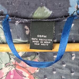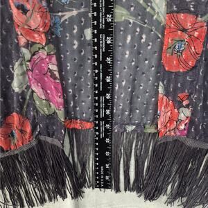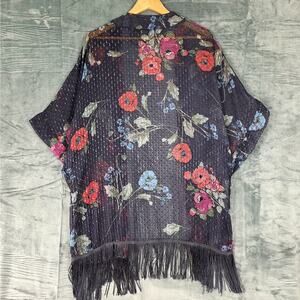 Womens Kimono One Size Floral Open Sheer Fringe Sheer Duster Boho Feminine Black