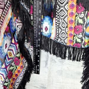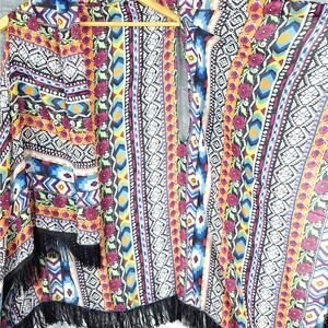 Womens Kimono One Size Vest Boho Hippie Fringe Festival Sheer Statement Colorful
