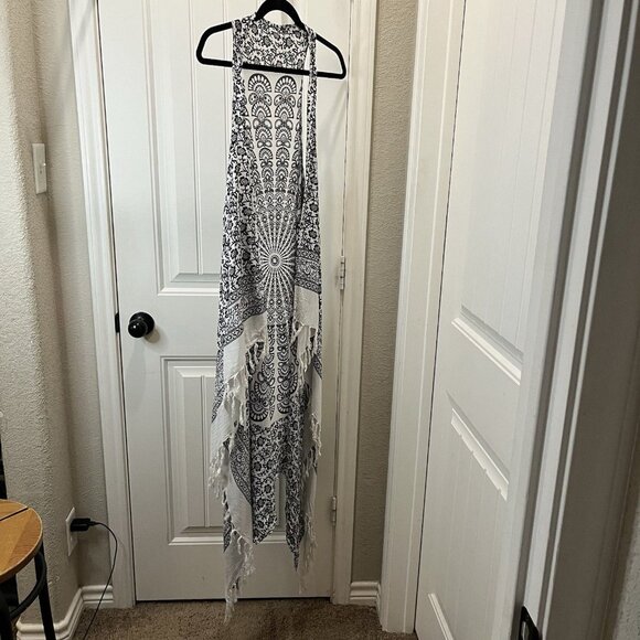 Womens Kimono Open Front Fringe Waterfall Medallion Paisley Sleeveless OS Boho
