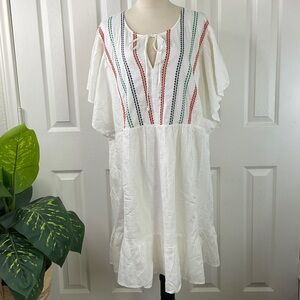Women's Kimono Short Sleeve Embroidered A-Line Dress Knox Rose White Size 3X