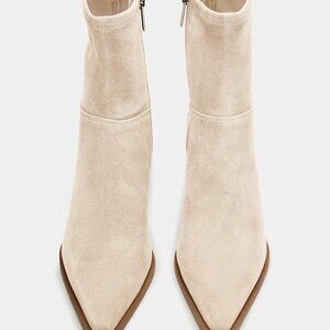 Features: These faux suede ankle boots have a sleek squared-point toe and a comfy 2.56-inch stacked kitten heel, perfect for elevating your look. The zipper makes them super easy to slip on and off, and the cushioned insole adds all-day comfort. The rubber outsole offers stability and durability, making them perfect for busy days.