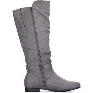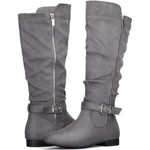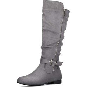 Women's Knee High Boots Flat Warm Winter Boots with Side Zipper, Gray